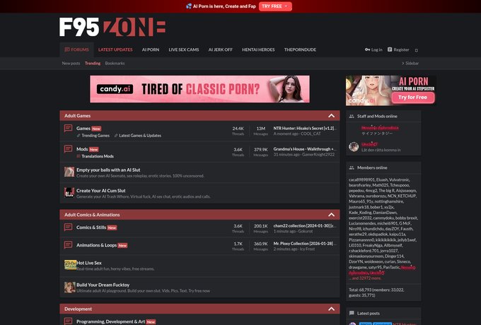 F95zone is a community forum dedicated to no-registration porn games, erotic visual novels, and free shared adult content. Members discuss, share mods, and updates. Ideal for enthusiasts seeking variety without paying.